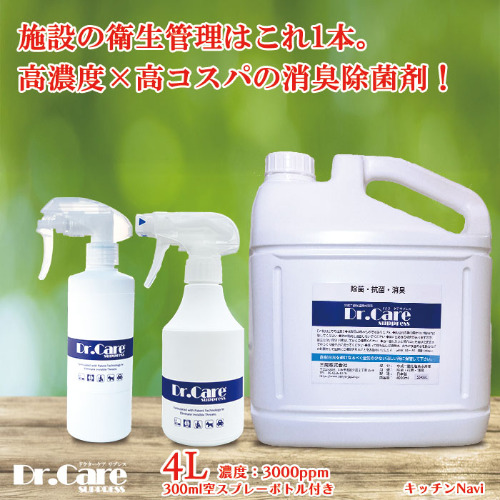 【宿泊施設事業者様専用】Dr.Care suppress® PRO 3000ppm|高濃度 除菌・消臭剤《業務用4L》